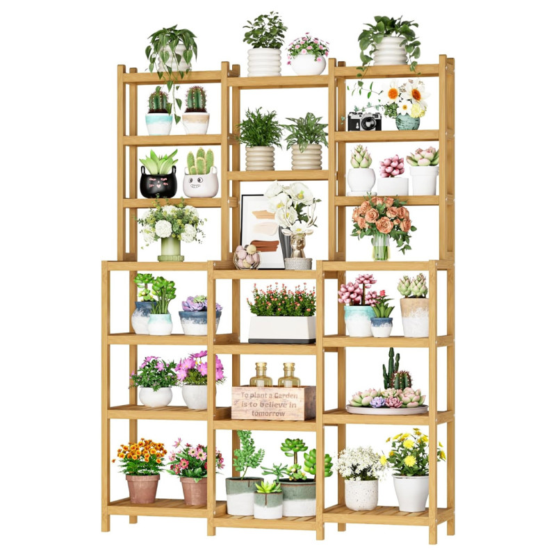 The Fotosok 7-Tier Bamboo Stand allows you to streamline your space without sacrificing design. The practical shelving layout and the number of shelves offer tons of space to store whatever you want. Show off plants, tidy your books, or keep the throw blankets on it. It works well in the living room, office, bedroom, entryway, or anywhere else you prefer to put it.